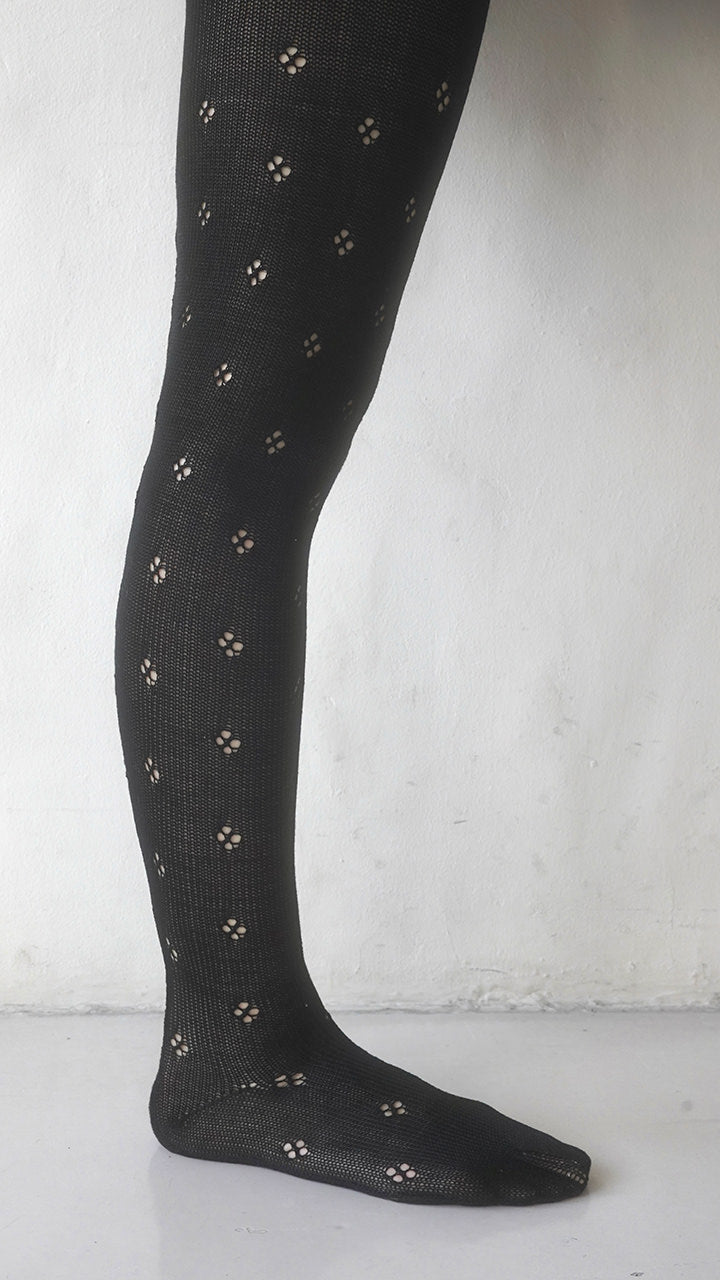 Custom-ordered socks inspired by traditional Spanish folk costumes from Pan. These socks, worn by people of all ages during festivals, were specially made to order. They are simple floral-patterned tights. The material makes them suitable for wearing throughout the year.