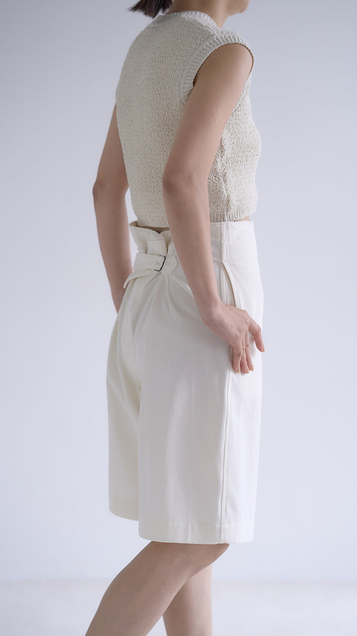 This is the first time we have made a short pants version of pan's classic Free Pants. The waist size can be adjusted by 25 using the back cinch. This item is designed to be worn according to your preferred style, whether high-waist or low-waist, and to suit different body types.