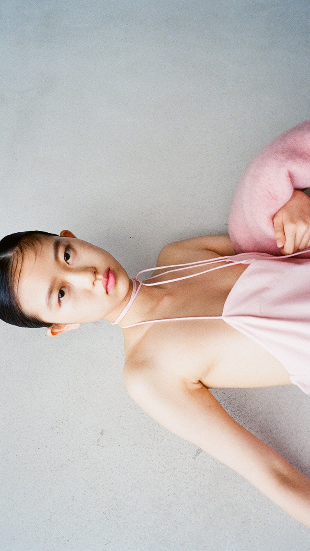 A one-piece dress made of canvas fabric that is not overly flamboyant. The shoulder straps can be worn in any arrangement, such as halter-neck, cross-band, or ribbon-band.