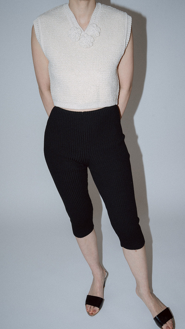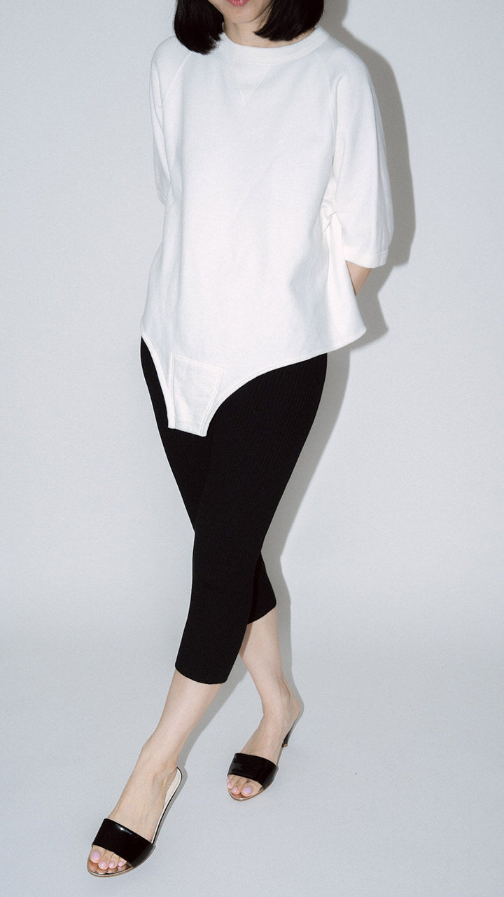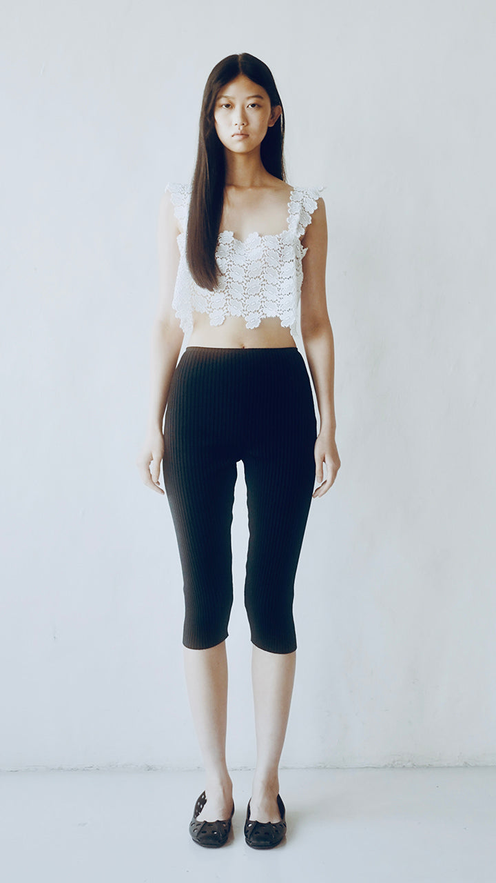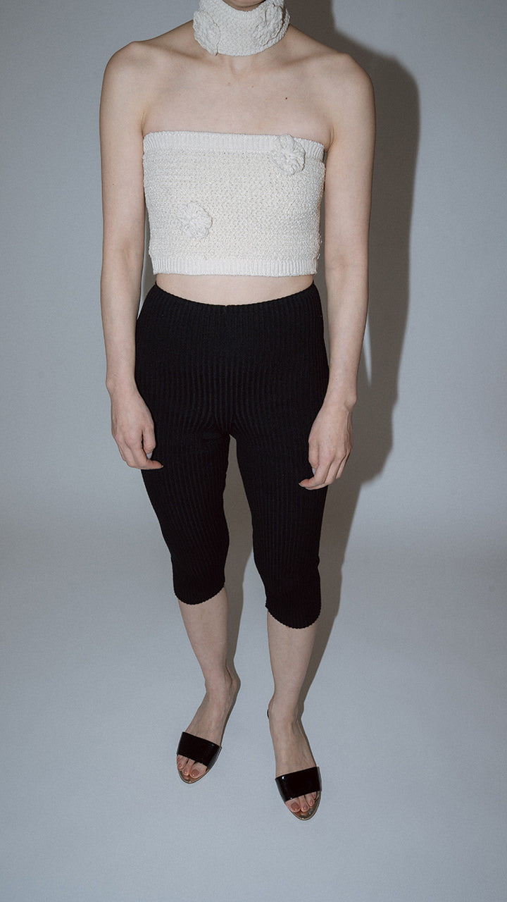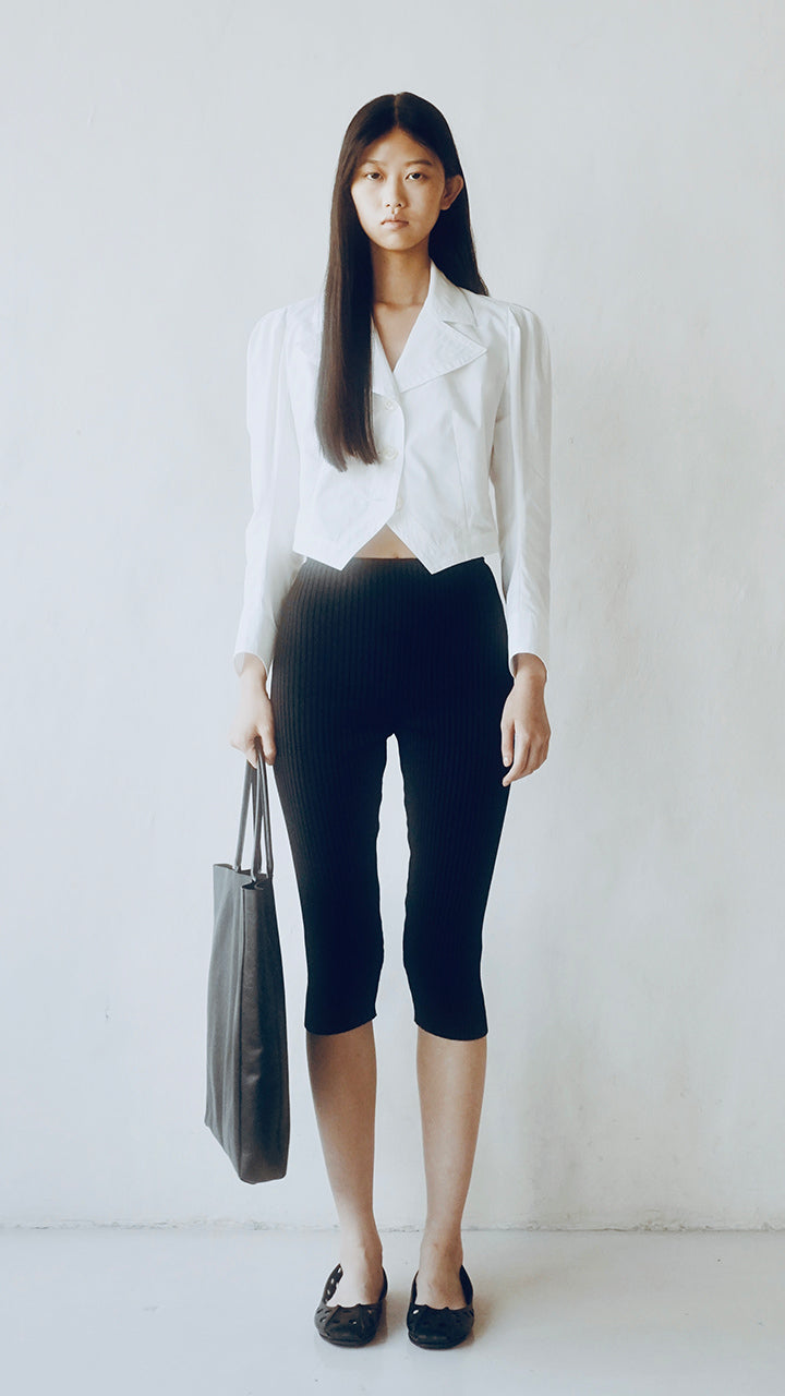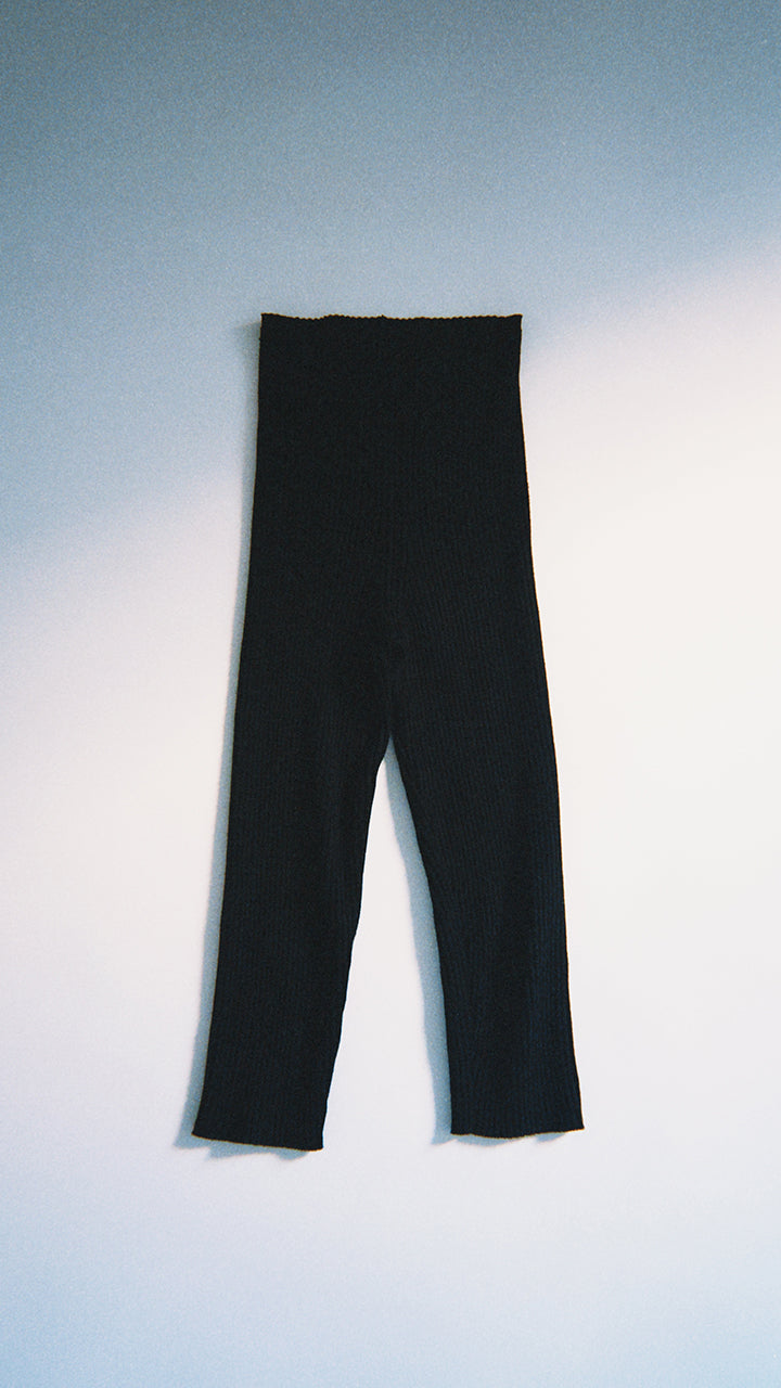 A new release of leggings from pan's classic KNIT series in the same material. The higher ribbing increases elasticity, allowing the leggings to fit your body shape comfortably. With a length reaching below the knees, they are very easy to wear. The leggings feature a simple and beautiful design with only a central seam.