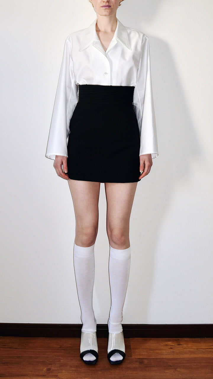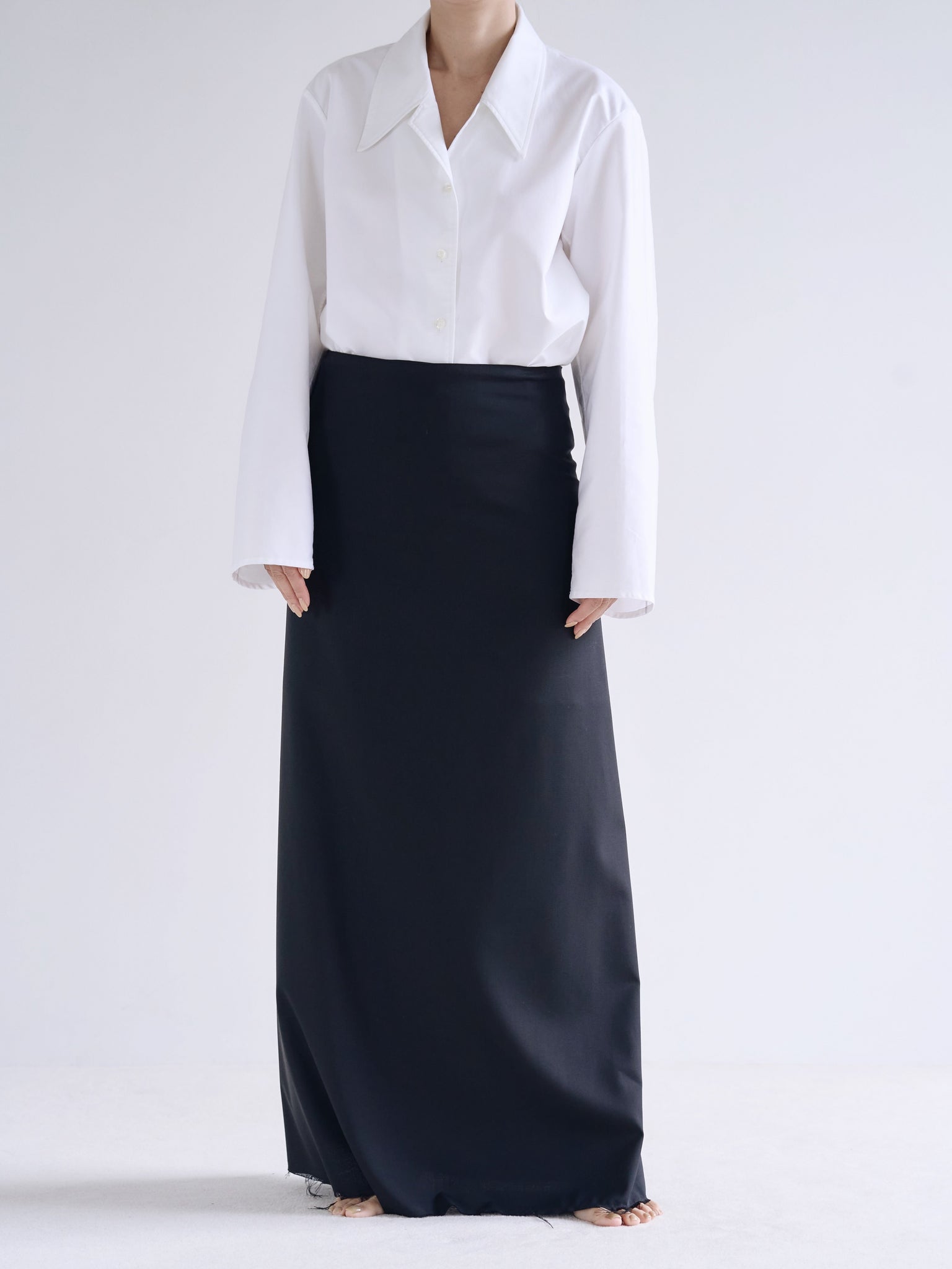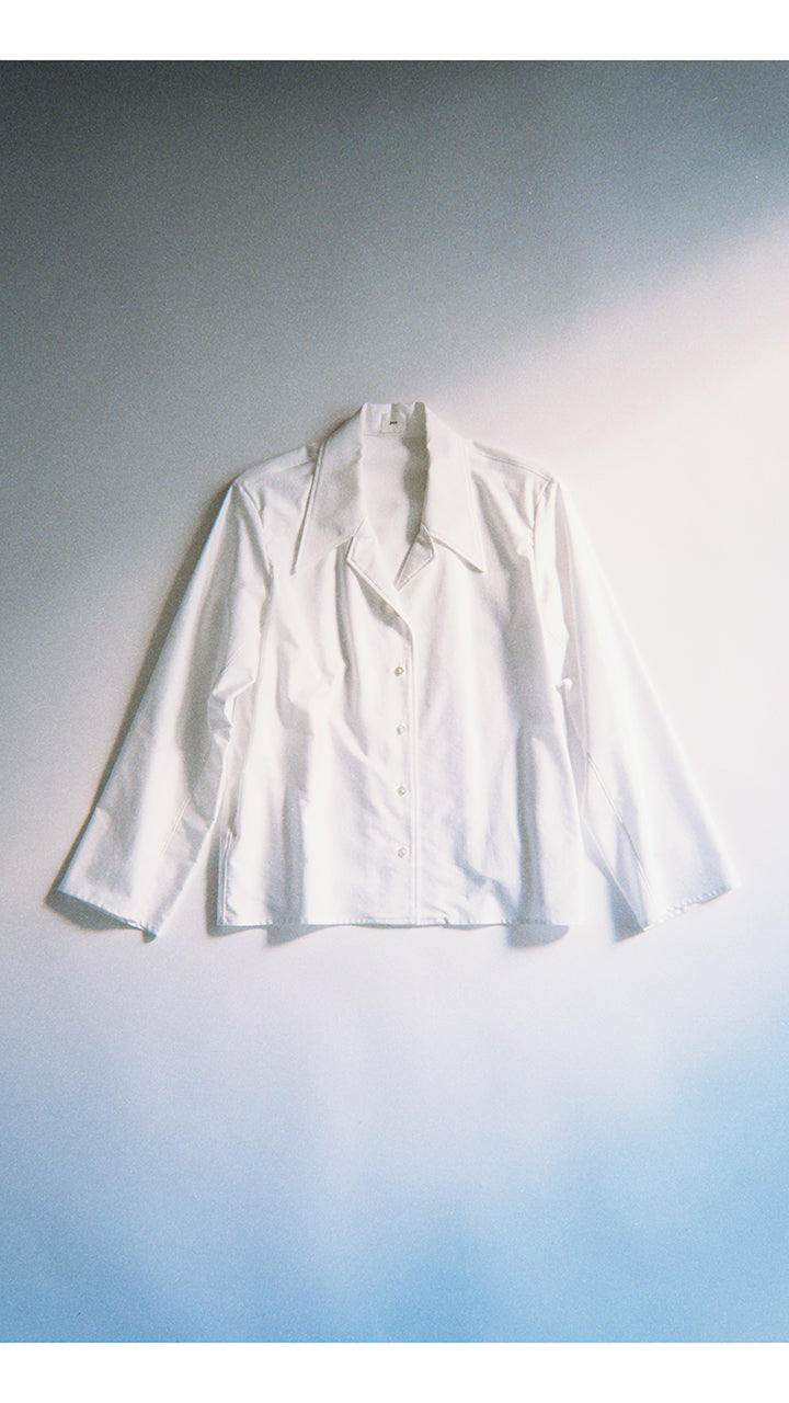 Made with 160/2 cotton back satin fabric. Using the highest quality material often used in formal items, we created this shirt jacket. It is an item that can be worn in various ways, such as tucked in like a shirt or worn loosely over other clothing.